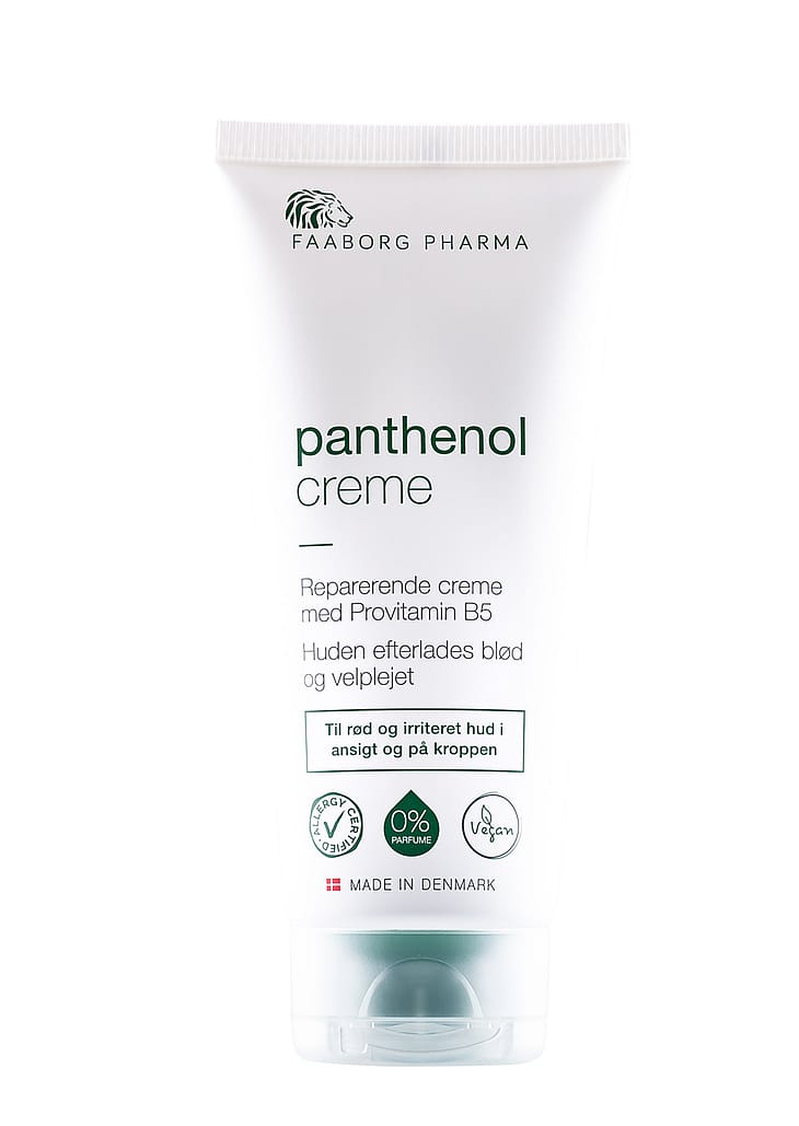 Panthenol creme (20% fedtindhold) er en reparerende creme til pleje af rød og irriteret hud på kroppen.