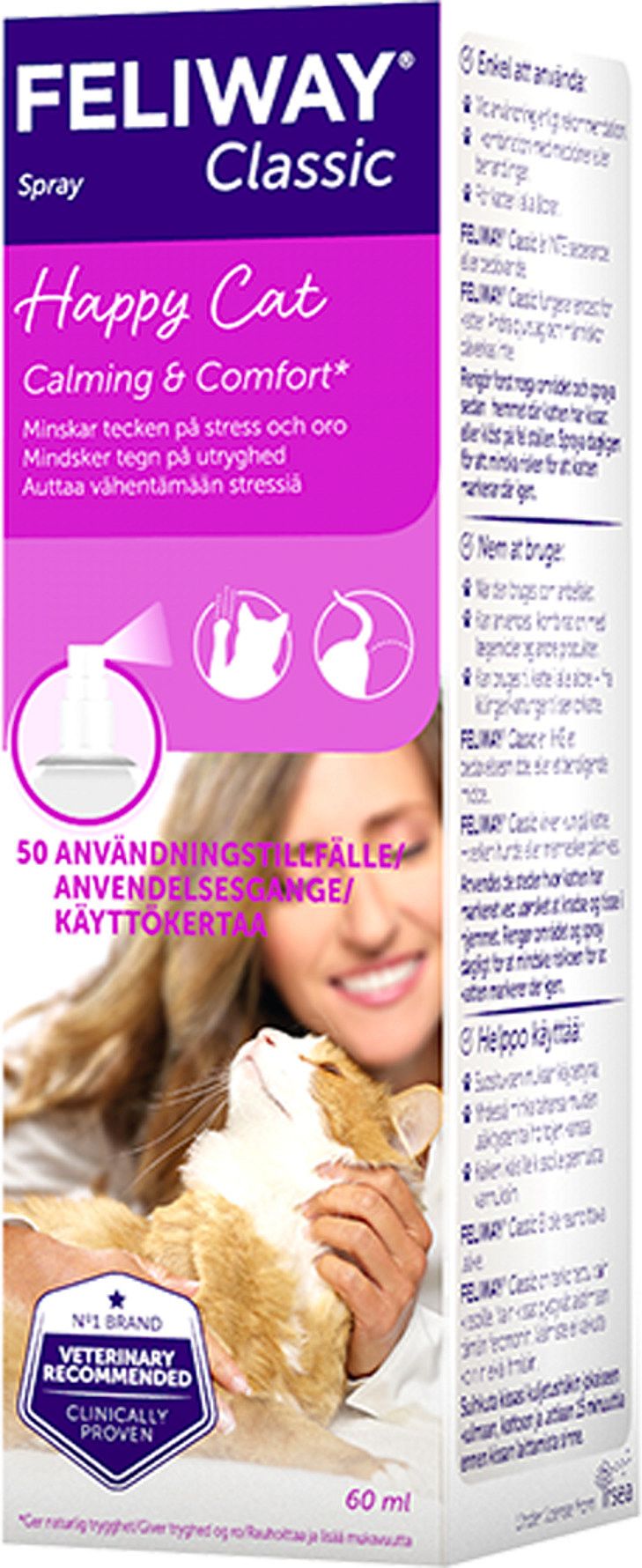 Denne spray indeholder samme tryghedsskabende feromoner - de er unikke for katte, og kan derfor hverken opfanges eller udsendes af mennesker eller andre dyr.
