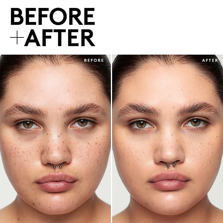 - Reducerer udseendet af porer, mørke pletter, fine linjer og rynker — øjeblikkeligt og over tid