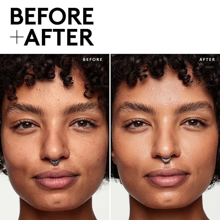 - Reducerer udseendet af porer, mørke pletter, fine linjer og rynker — øjeblikkeligt og over tid