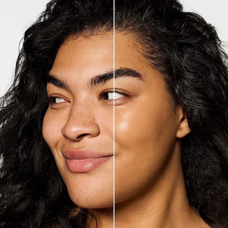 Denne lette, vandfaste formel reducerer øjeblikkeligt forekomsten af glinsende hud og giver en helt ny form for udstråling.