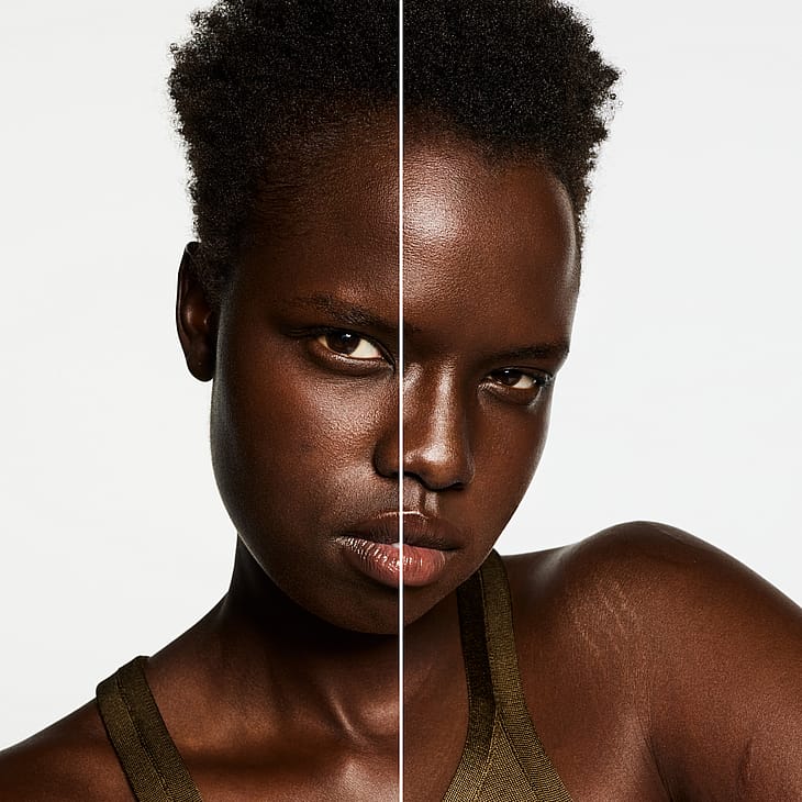 Denne lette, vandfaste formel reducerer øjeblikkeligt forekomsten af glinsende hud og giver en helt ny form for udstråling.