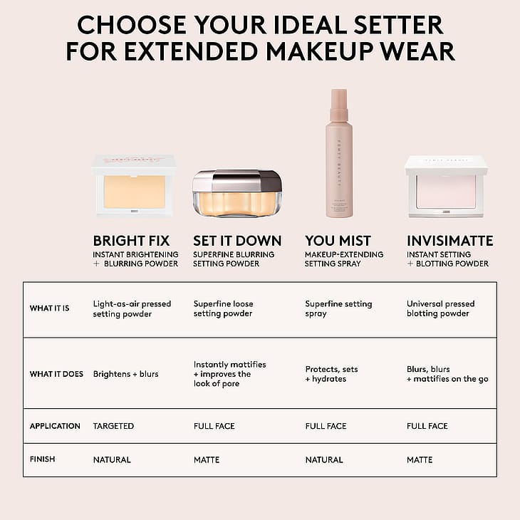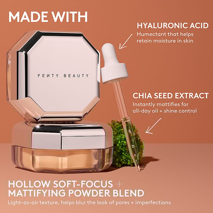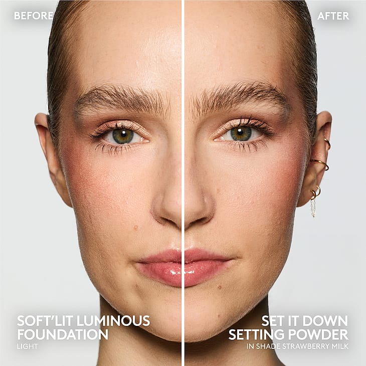 Påfør et ultralet setting-pudder, der forlænger makeupens holdbarhed, beskytter mod sved og fugt og matter glans, mens det udjævner porernes synlighed.