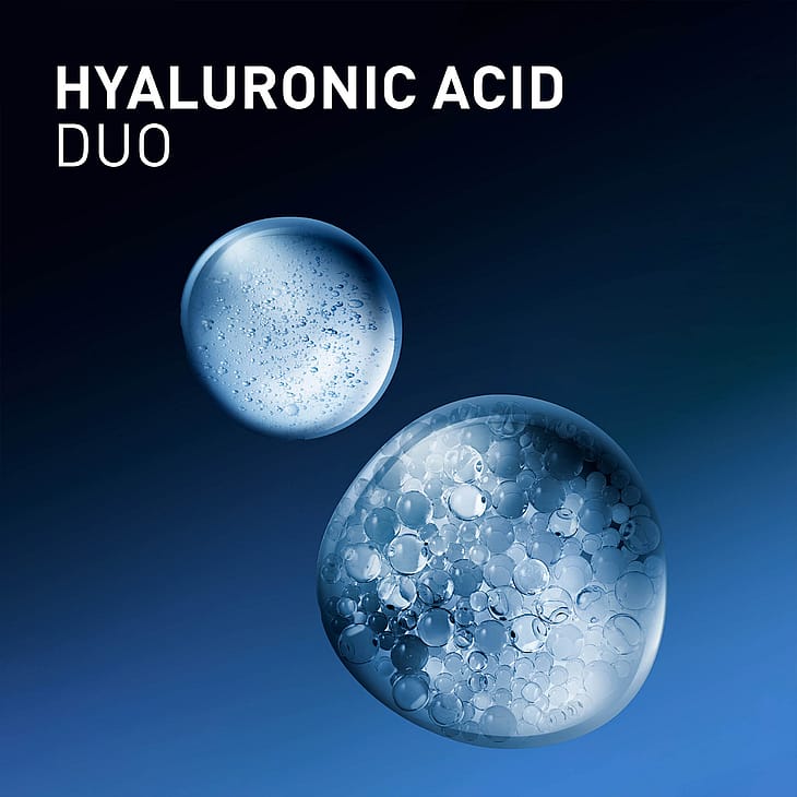 5 forskellige hyaluronsyrer (retikuleret, indkapslet, lav, medium og høj molekylevægt) tilfører fugt, virker udglattende og gør huden fyldigere.
