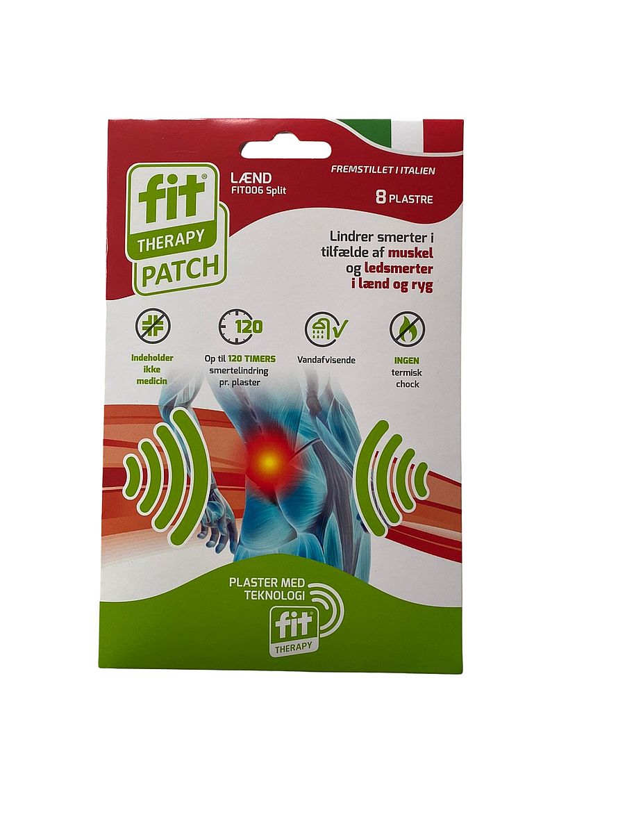 FIT smertelindrende plaster til lænden. Plasteret forbliver funktionelt, når det er vådt (f.eks. ved brusebad).