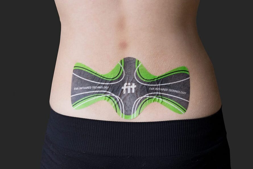 FIT smertelindrende plaster til lænden. Plasteret forbliver funktionelt, når det er vådt (f.eks. ved brusebad).