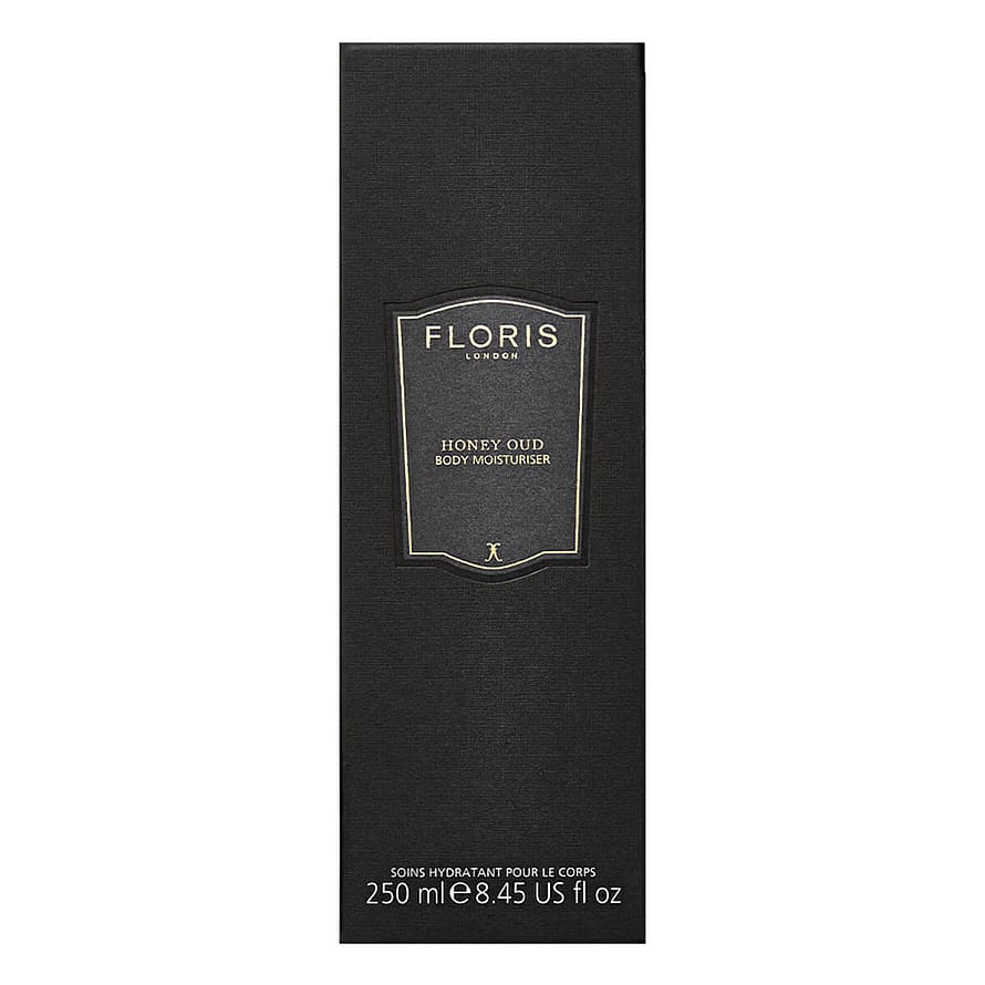 Floris Honey Oud Enriched Body Moisturiser er en rig og plejende bodylotion som tilfører huden intens fugt og efterlader den blød, glat og velplejet. Den lette og hurtigtabsorberende konsistens gør den behagelig at bruge i hverdagen uden at føles tung eller fedtet. Honey Oud-duften kombinerer søde honningnoter med varme træ- og oudtoner som giver en dyb, sensuel og luksuriøs aroma, perfekt til dem der ønsker en mere intens duftprofil i deres kropspleje.