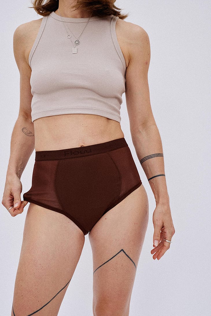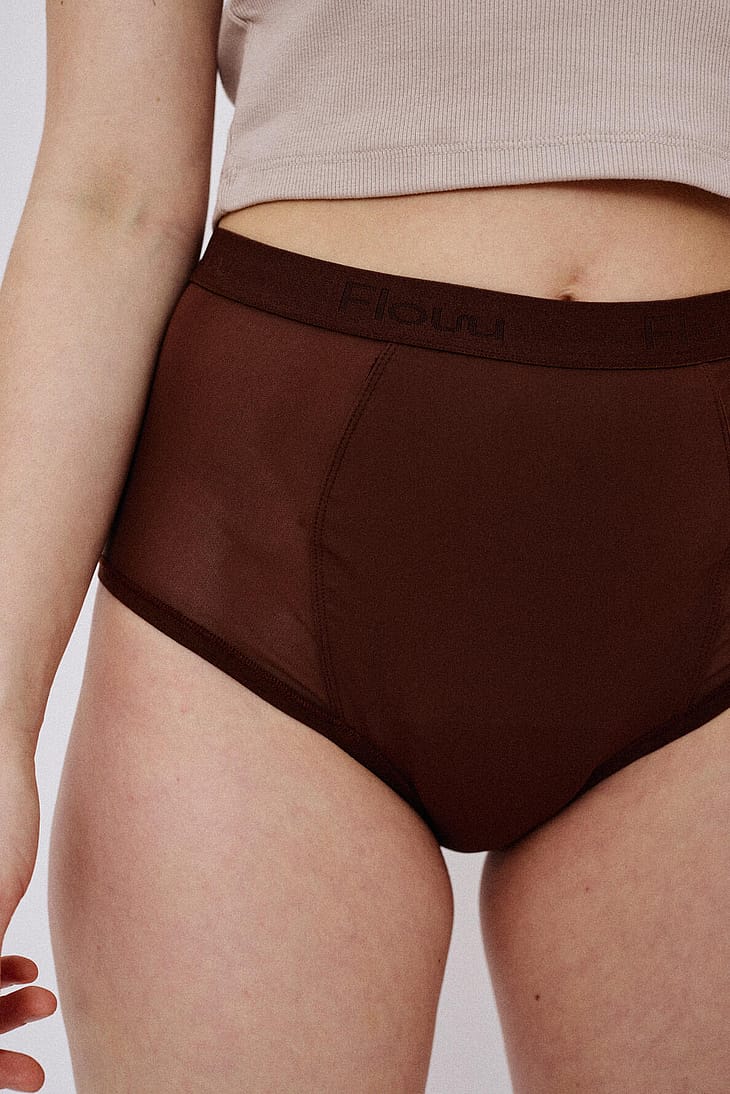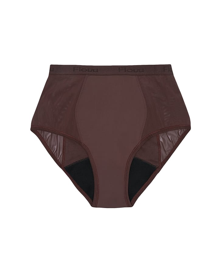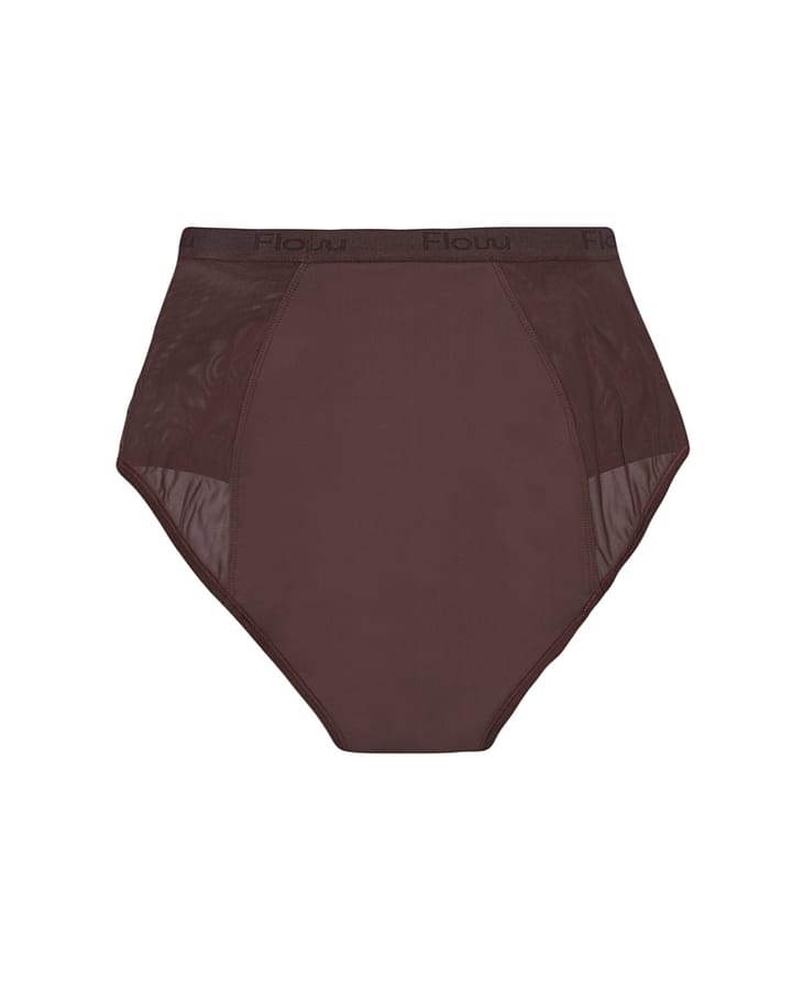 Mesh-panelerne i siden gør pasformen mere elastisk, og de buede sømme for- og bagtil er med til at fremhæve din figur. Menstruationstrusserne har en smørblød elastik i taljen med diskret Flow-logo på.