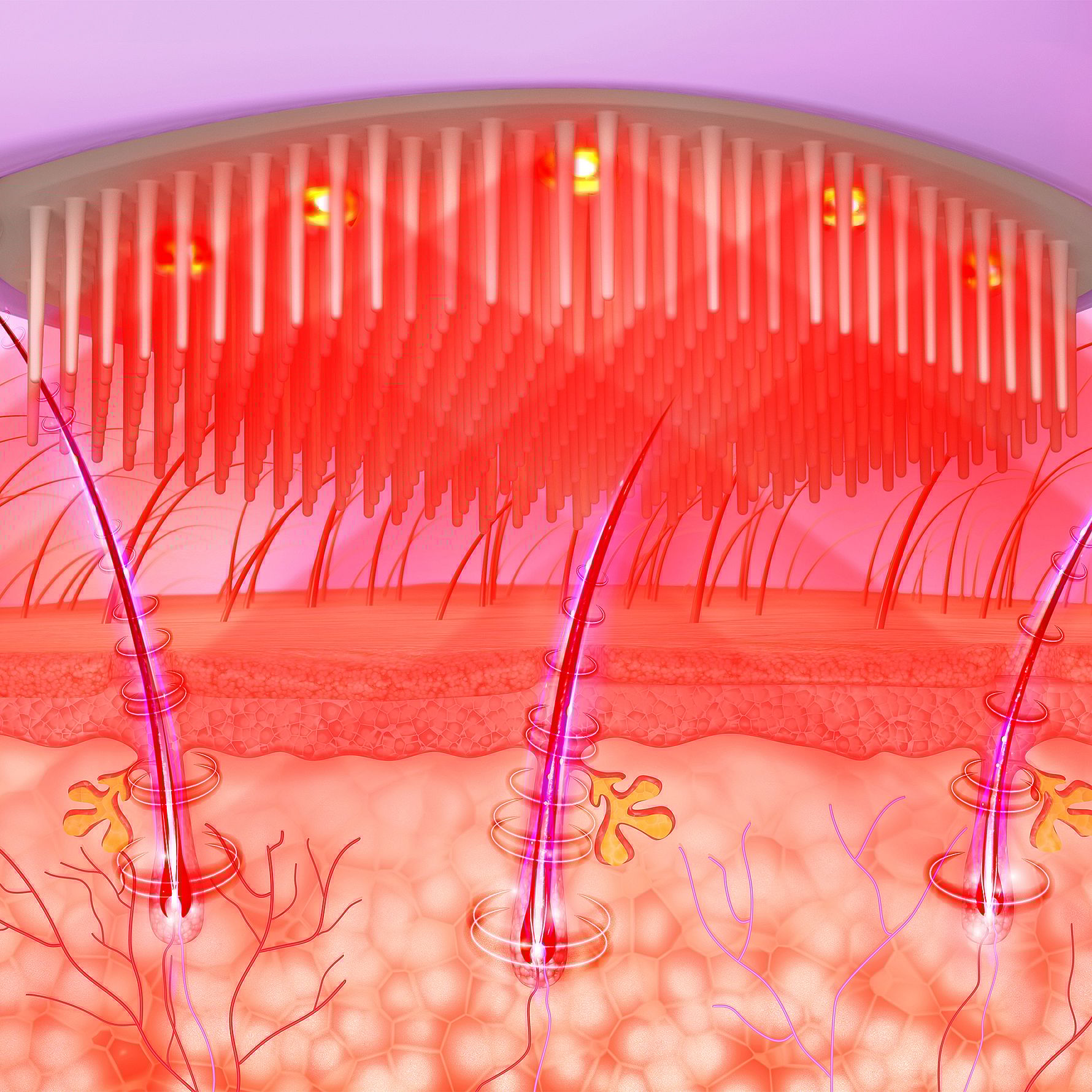 Nøgleingredienser - Rødt LED-lys: Trænger dybt ind i hovedbunden for at energisere svækkede hårsække, reducere brud og tyndt hår