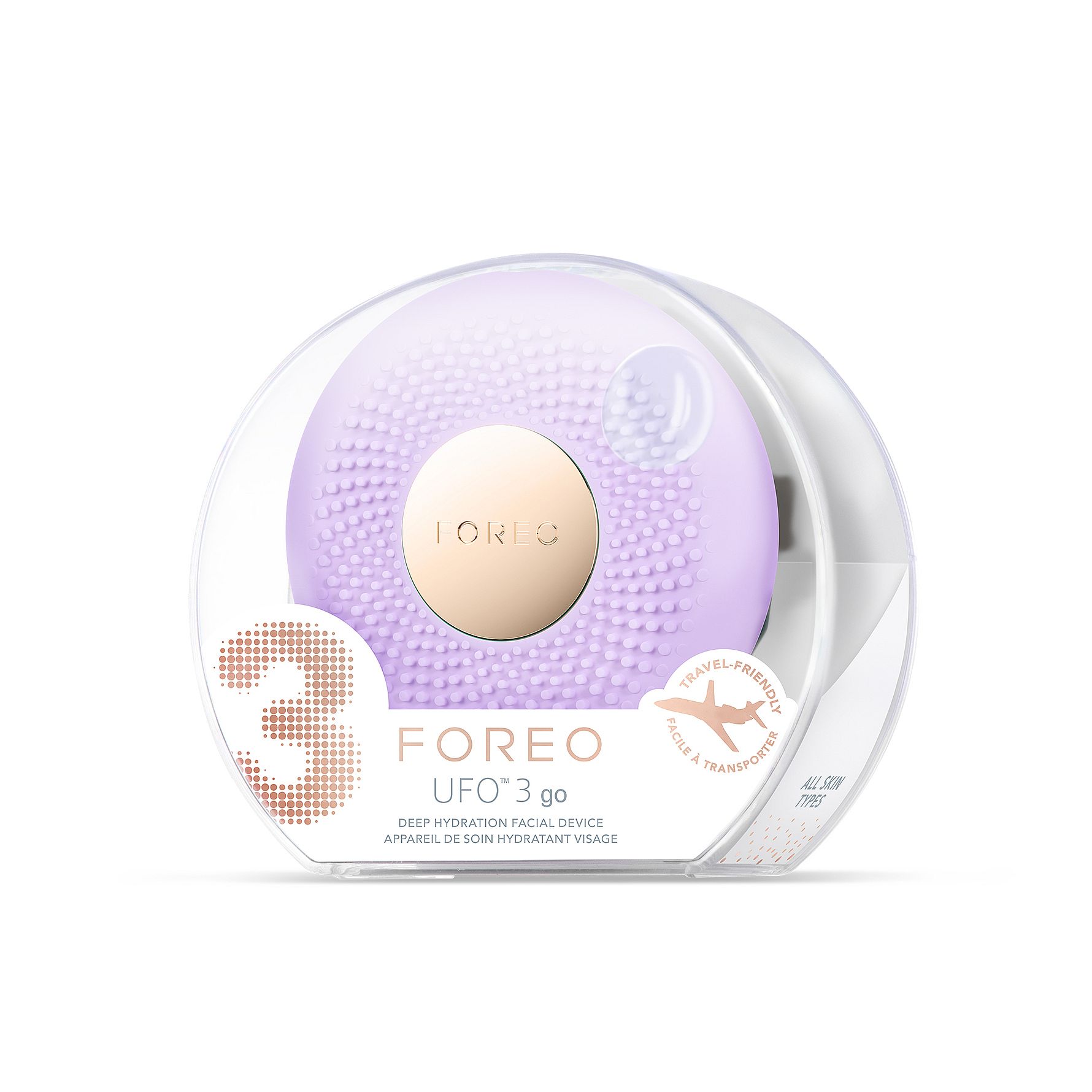 UFO 3 Go – Kraftfuld hudteknologi til dig på farten! UFO 3 go giver dig en fugtgivende ansigtsbehandling på kun 2 minutter! Denne avancerede enhed anvender 5 kliniske teknologier designet til forskellige hudtilstande såsom aldring, inflammation, mørke rander under øjnene, tørhed og sensitivitet. UFO 3 go forbedrer din hudkvalitet og giver dig en strålende glød ved hjælp af hurtig opvarmning, T-Sonic-pulseringer og et fuldt spektrum af LED-lys. Vælg den ansigtsmaske, som din hud har brug for, og forstærk dens evner med din UFO 3 go for en strålende og fugtet hud. LED-lysene har unikke egenskaber og fokuserer på forskellige hudtilstande, og i kombination med 45-graders varme og T-sonic pulseringer øger de absorptionen af maskerne, samtidig med at musklerne i ansigtet slapper af.