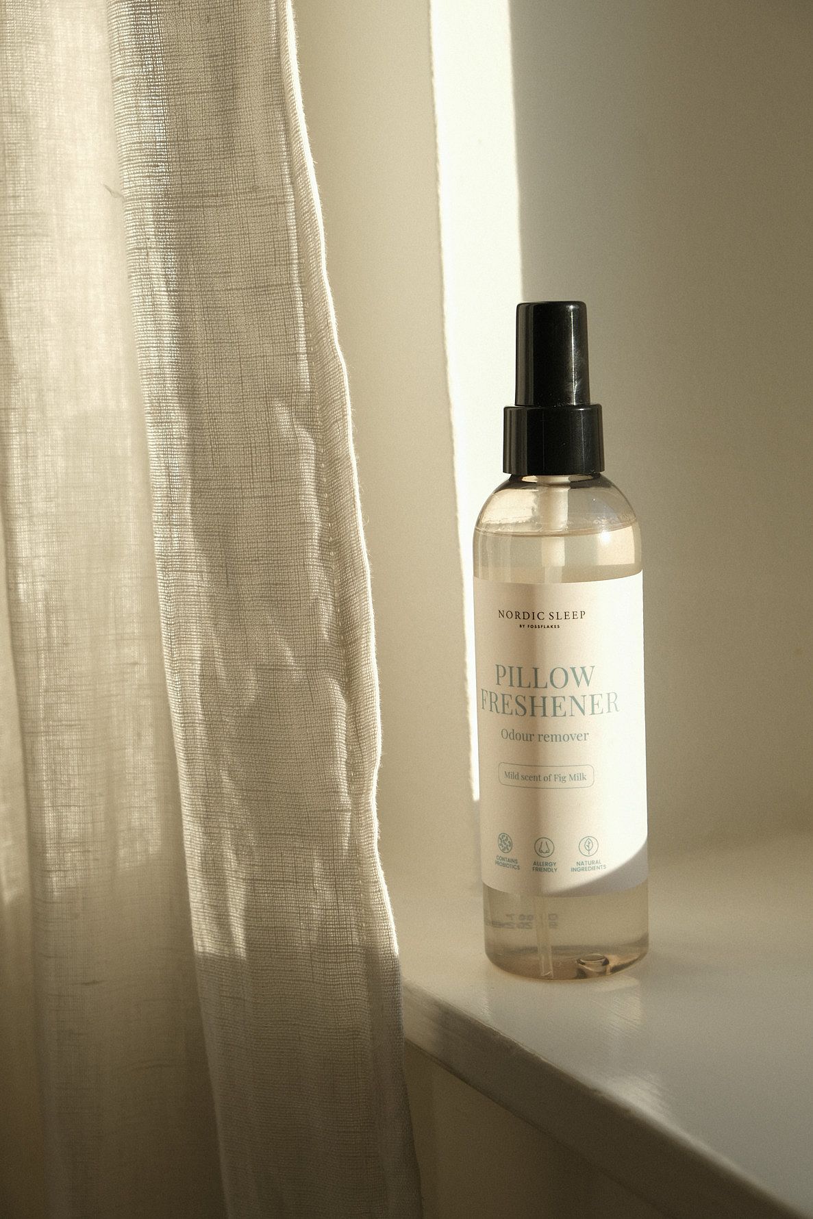 Probiotika fremmer samtidig en sund mikrobiologisk balance og hæmmer skadelige bakterier - helt uden brug af unødvendige kemikalier. Sprayen har en mild, cremet duft inspireret af fignemælk, der skaber en ren og behagelig atmosfære i soveværelset, uden at virke overvældende. Den er skånsom, hurtigvirkende og egner sig til regelmæssig brug i hele hjemmet.