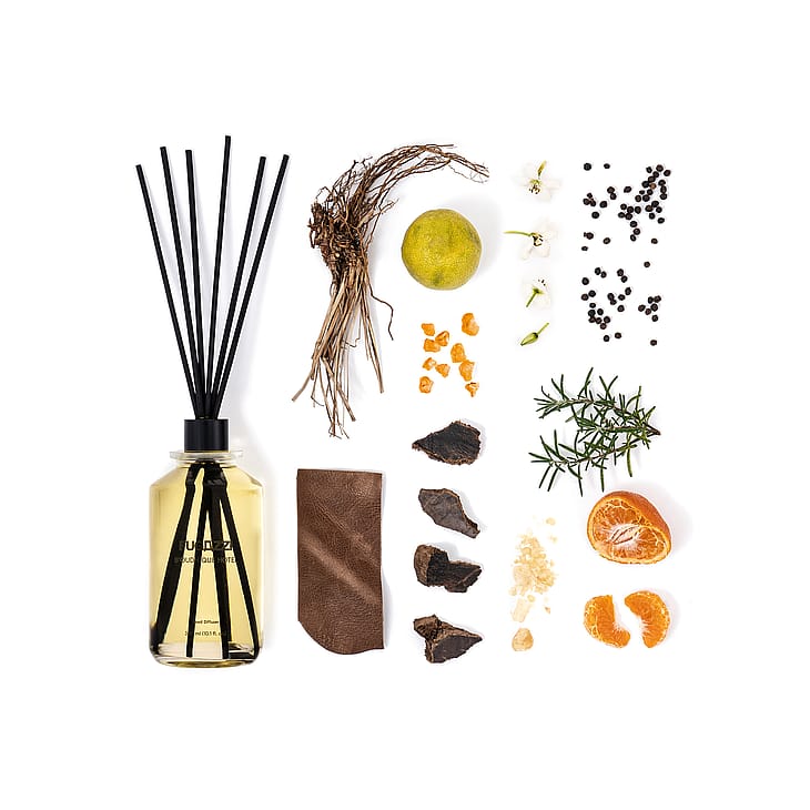 Denne diffuser løfter dit rum med sin unikke stemning: livlig bergamot blandet med et strejf af sort peber, alt sammen indhyllet i den varme duft af appelsinblomst og rosmarin.
