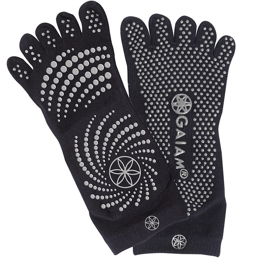 Gaiam Grippy Yoga Socks er komfortable yogasokker designet til brug med eller uden yogamåtte. Sokkerne har et gummimønster på undersiden for at øge balance og stabilitet og reducere risikoen for at glide.