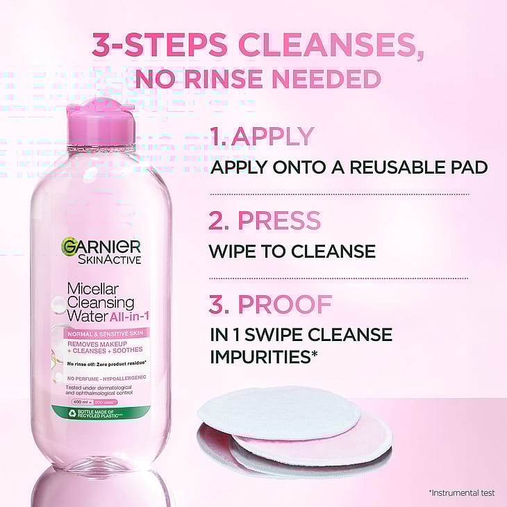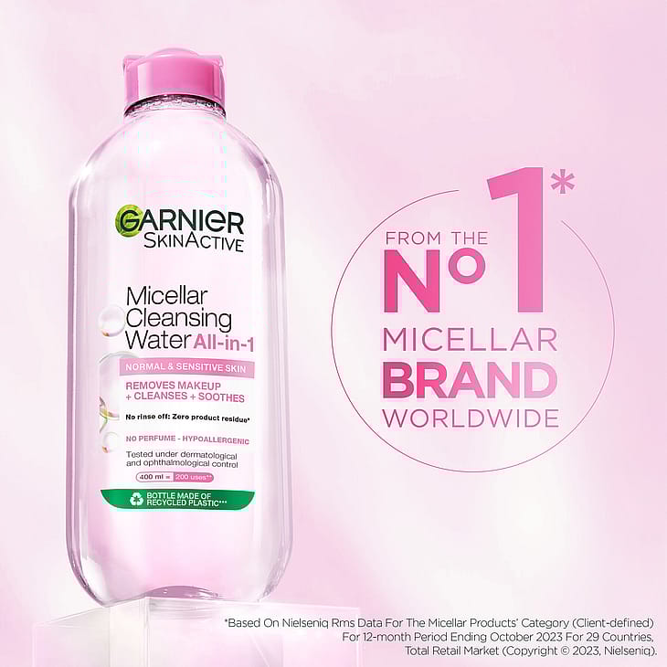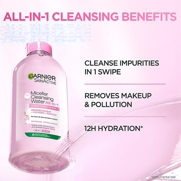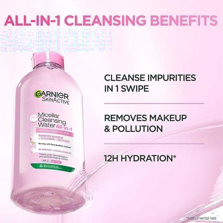 Opdag et renseprodukt med miceller, som tiltrækker snavs som en magnet, Garnier Micellar Cleansing Water – rensevand til normal og sensitiv hud. Hvem passer den til?
