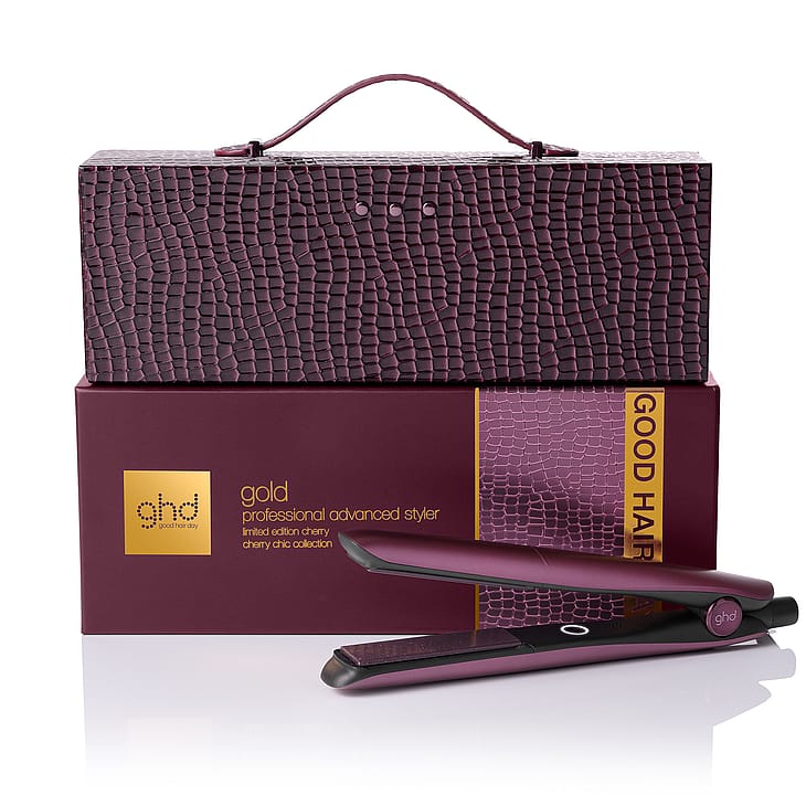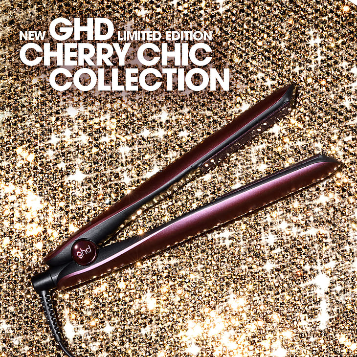 Få femstjernet hår til jul med ghd Cherry Chic-kollektionen – en Limited Edition-serie i en iøjnefaldende, dragende kirsebærrød farve.