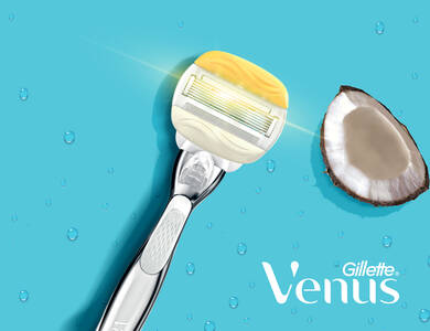 Tip: Brug Gillette Satin Care Sensitive Skin Shave Gel sammen med Venus-skraberne. Den sørger for en mere behagelig barbering.