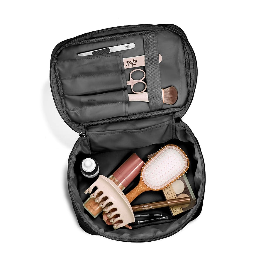 Den rummelige beautyboks har 5 lommer og elastik i låget, så du nemt kan organisere og adskille dine makeuppensler og produkter. Med lynlås lukning og en praktisk hank, er den let at transportere, uanset om du er på farten eller derhjemme.