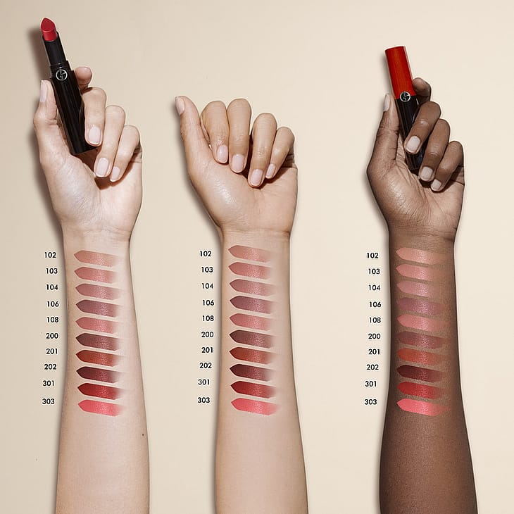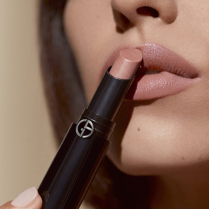 Den holdbare Lip Power-læbestift tilbyder en rig palet med 30 nuancer, der omfatter Giorgio Armanis signaturtoner.