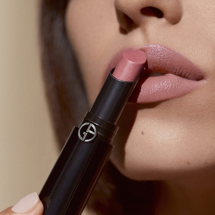 Den holdbare Lip Power-læbestift tilbyder en rig palet med 30 nuancer, der omfatter Giorgio Armanis signaturtoner.