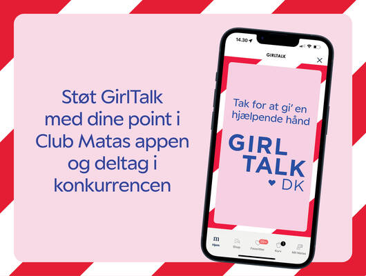 I år kan du også hjælpe dem, der hjælper andre, når du køber dine julegaver i Matas. Du kan nemlig give dine optjente point til GirlTalk, der arbejder med at forebygge mistrivsel blandt unge piger og kvinder og styrke deres selvværd.