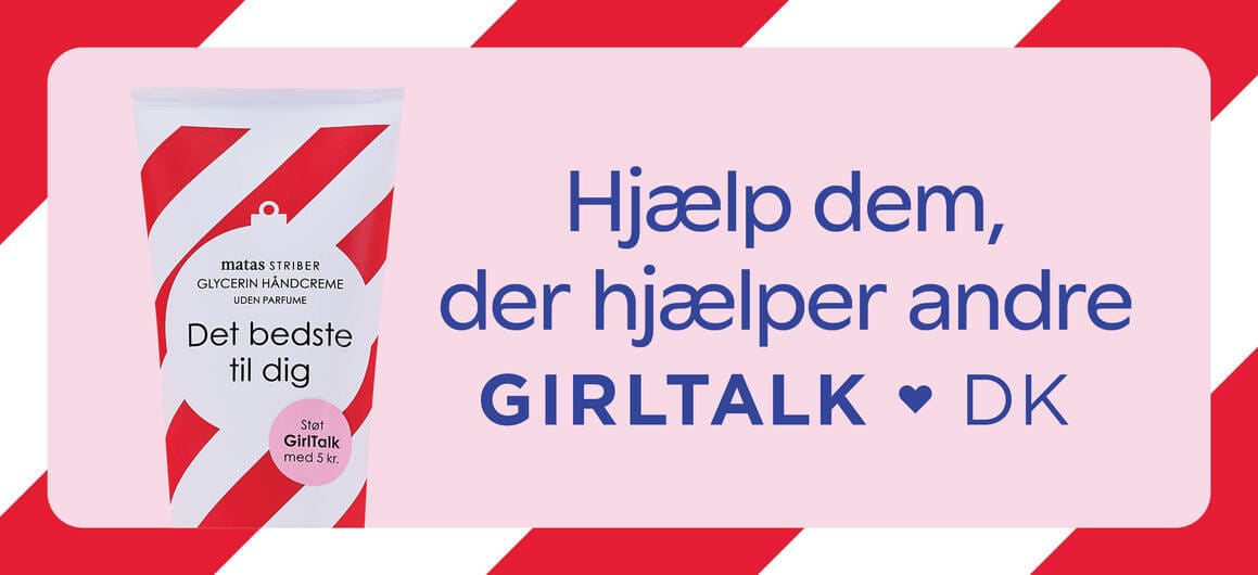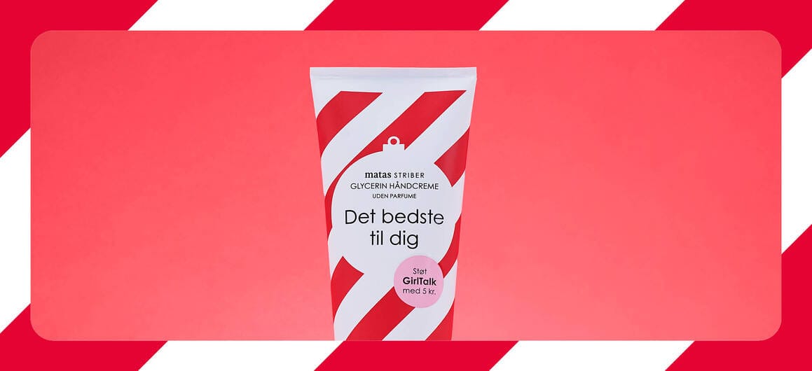 I samarbejde med GirlTalk har vi udviklet en Limited Edition af Matas Stribers populære Glycerin håndcreme i vores smukke julefarver. Den er helt særlig, for når du køber håndcremen til dig selv eller gi’r den i julegave, så donerer vi 5 kr. til GirlTalk for hvert solgt produkt.