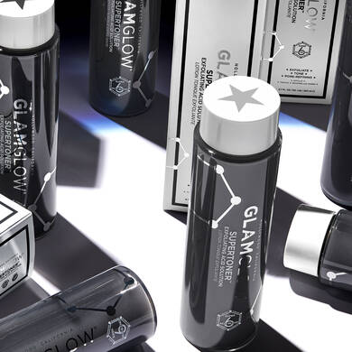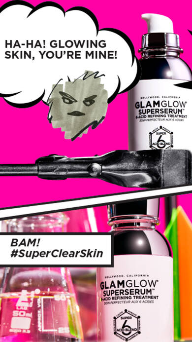 GLAMGLOWs #1 Best Seller Mud Treatment #SUPERMUD har fået nye familiemedlemmer. Mød vores nye SUPERS, der hjælper dig med at bekæmpe din huds værste fjender! #SUPERTONER & #SUPERSERUM. GLAMGLOWs SUPER produkter er baseret på den patenterede formel: Super-6 Acid Blend