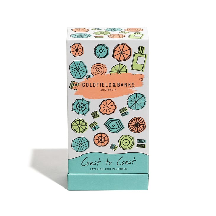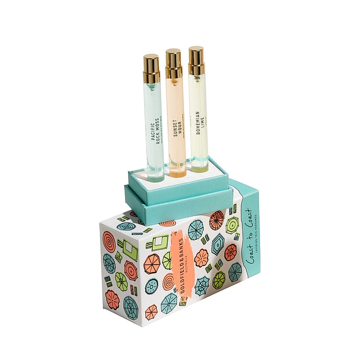 Denne trio er det perfekte duftkit med tre 10 ml rejsesprays med Goldfield & Banks’ mest ikoniske dufte: Pacific Rock Moss, Bohemian Lime & Sunset Hour, designet til at ledsage dig på din rejse til kystnære oaser denne sommer.