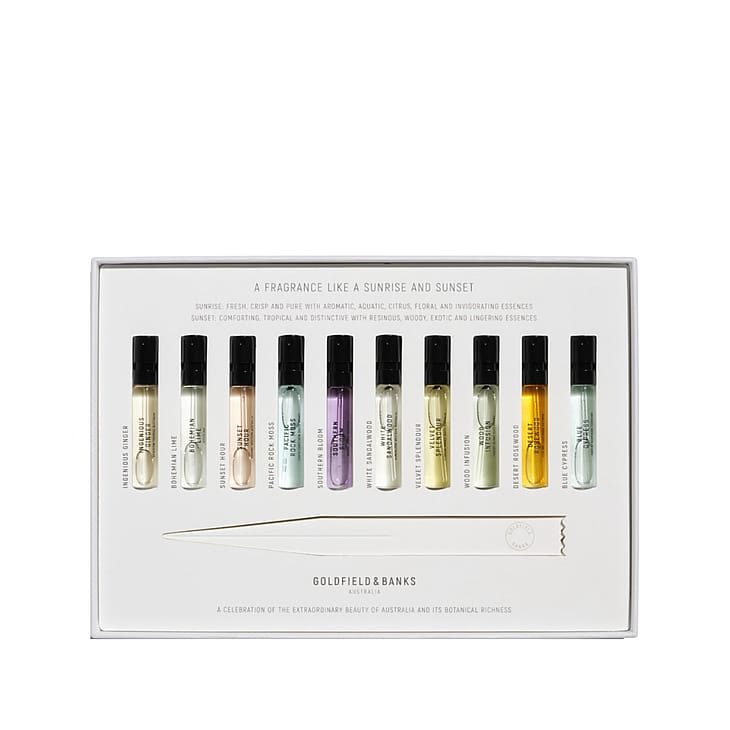 Bliv vært for dit helt eget Goldfield & Banks parfumeekspertkursus med den luksuriøse Discovery Sample Collection. Fortryl dine sanser og forkæl dig selv eller dine venner med 10 x 2 ml parfume sprayflasker, spraykort og en informationsbrochure.