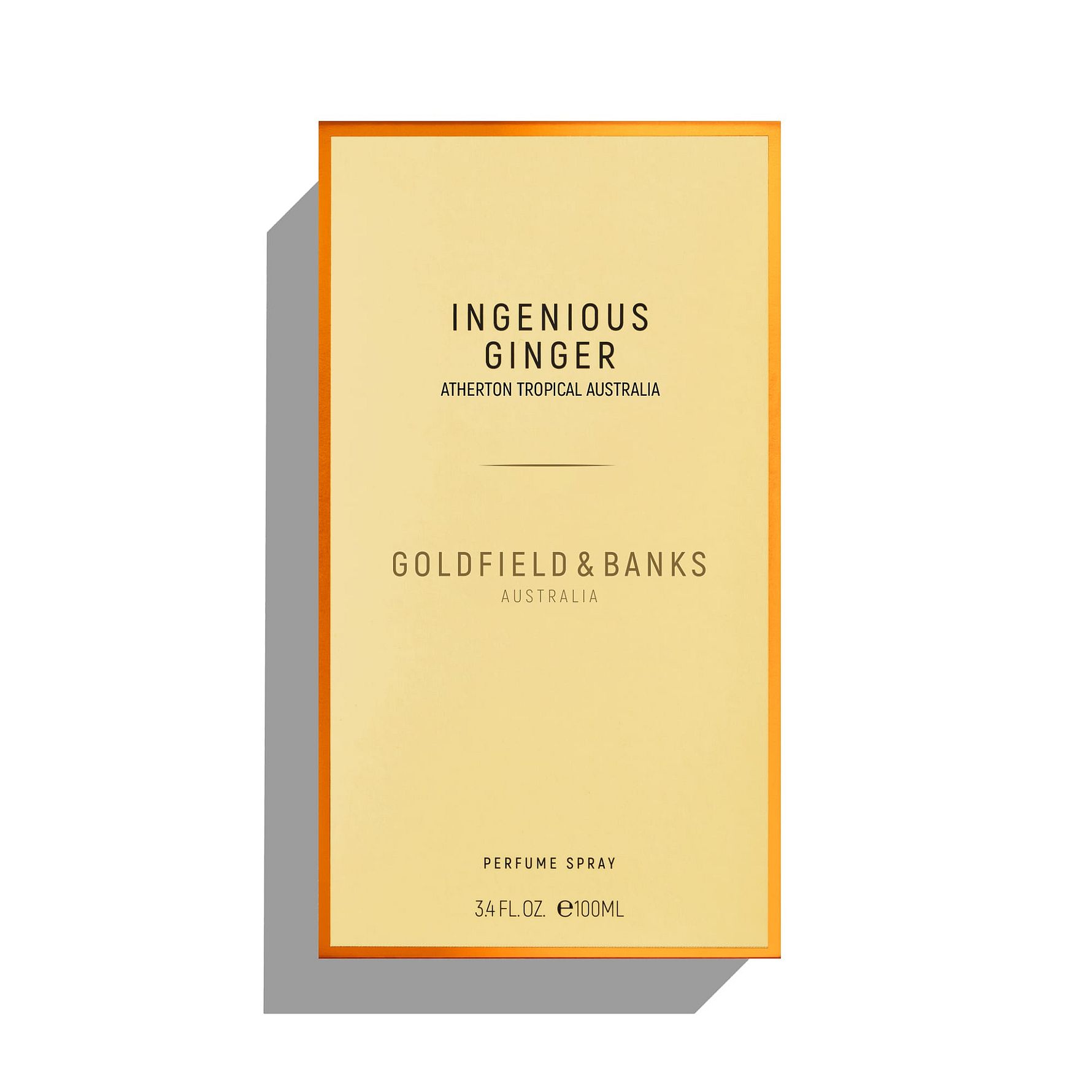 Ingenious Ginger er en olfaktorisk forestilling om den uparfumerede ingefærliljeblomst og er en abstrakt citrus-, blomster- og amberagtig parfume, der udtrykker Goldfield & Banks’ grundlæggers mest elskede tropiske blomst, som vokser i overflod ved hans feriehus i de fugtige troper. Denne opløftende parfume åbner med en eksplosion af bergamotte, som forstærkes af den sprudlende duft af ingefær, den funklende mandarin og den strålende og solrige aura af magnolia.