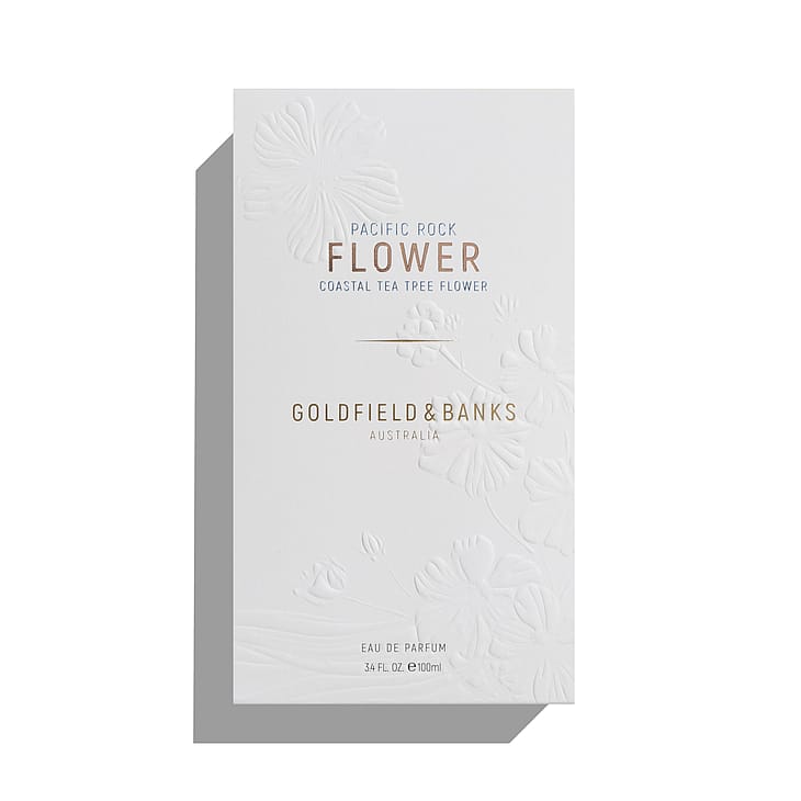 Goldfield & Banks' grundlægger Dimitri Weber skabte Pacific Rock Flower sammen med den berømte franske parfumør Emilie Bouge hos Robertet, det prestigefyldte parfumehus i Grasse. Den æteriske olie fra Coastal Tea-Tree's indeholder opkvikkende tea tree og kølende eukalyptus. Jordnær sødme og let citrus, afrundet med et strejf af havsalt og blødgjort af delikate cremede blomsternoter som koralblomst, tuberose og cremet kokosvoks. Når parfumen tørrer, afslører den varme dybder af patchouli og langvarig australsk sandeltræ