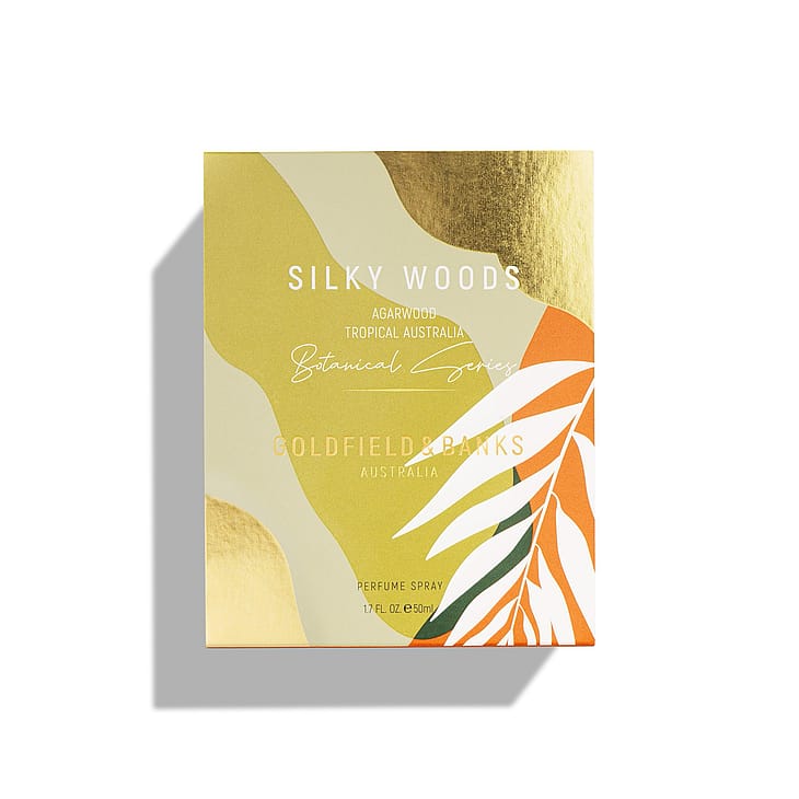 Silky Woods er indkapslet i smeltet guld og tilført dyrebart agartræ og er den første duft i Goldfield & Banks’ luksuskollektion Botanical Series. Silky Woods fremhæver de dyrebare træsorter, der for første gang i parfumehistorien er høstet bæredygtigt i Daintree-regnskoven i det tropiske Queensland, og er en dejlig og delikat, men meget sensuel blanding, der indfanger Australiens sanseoplevelse.