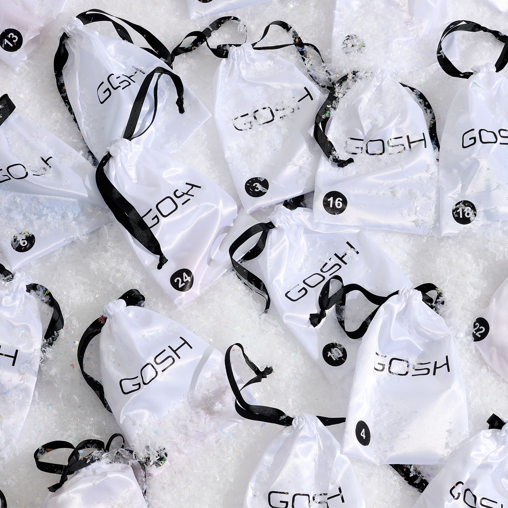 Hver låge gemmer på et nyt must-have fra GOSH-universet: tænk makeupfavoritter, skønne dufte og hudpleje – alt sammen nøje udvalgt til at skabe små øjeblikke af glæde i den travle juletid.
