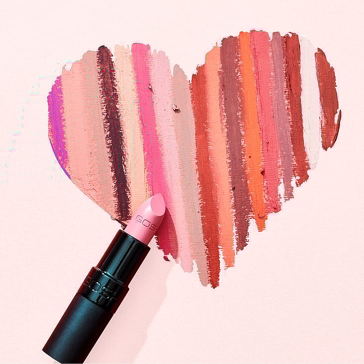 GOSH Velvet Touch Lipstick giver med sin høje pigmentkoncentration en intens holdbar farvevirkning på læberne.