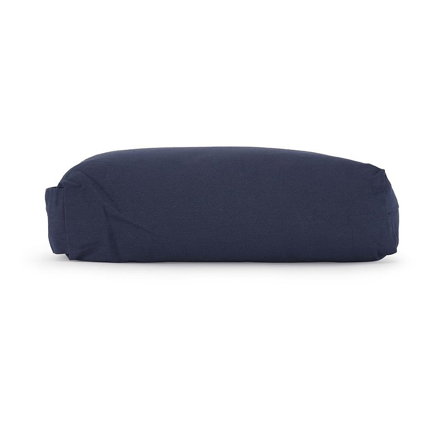 Denne bolster er bred og relativt flad, hvilket både gør den god som ‘blød støtteblok’, meditationspude og pude til ryg, knæ og nakke i hvilende stillinger.