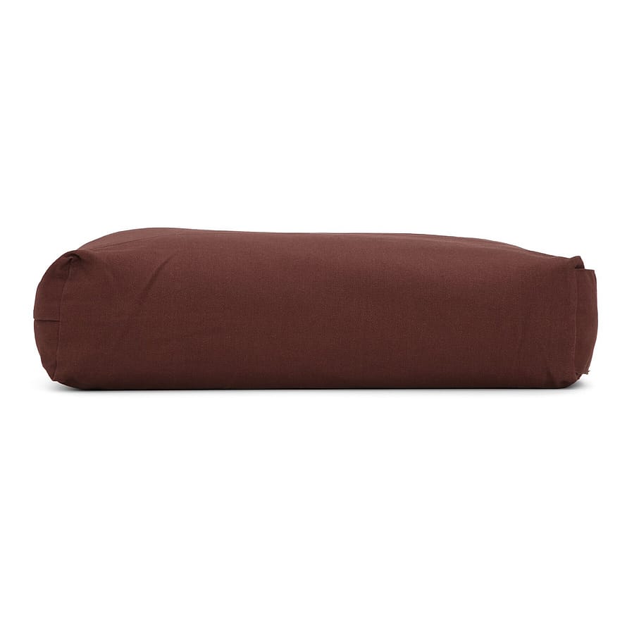 Denne bolster er bred og relativt flad, hvilket både gør den god som ‘blød støtteblok’, meditationspude og pude til ryg, knæ og nakke i hvilende stillinger.