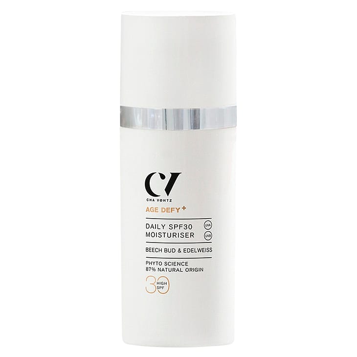 Green Peoples Age Defy+ Daily SPF30 Moisturiser hjælper med at bekæmpe synlige tegn på sol-relateret aldring ved at bruge certificerede økologiske ingredienser og hudopstrammende planteaktive stoffer som knopper fra bøgetræet og naturlige antioxidanter til at beskytte hudceller mod for tidlig aldring.