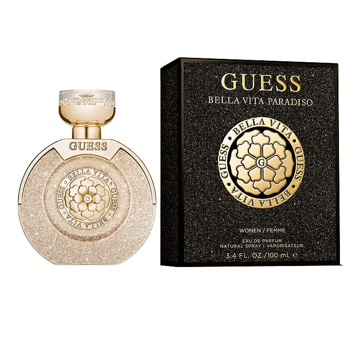 GUESS Bella Vita Paradiso Eau de Parfum indfanger essensen af gyldne solnedgange og ubesværet glamour. En luksuriøs duft skabt til selvsikre og sofistikerede kvinder, der ønsker en varm og sensuel signaturduft.
