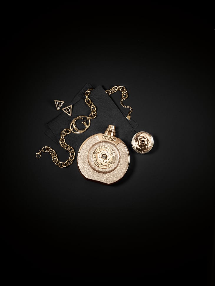 Indkapslet i en strålende champagnegylden flakon, hvor det ikoniske blomsteremblem afspejler duftens rige karakter.