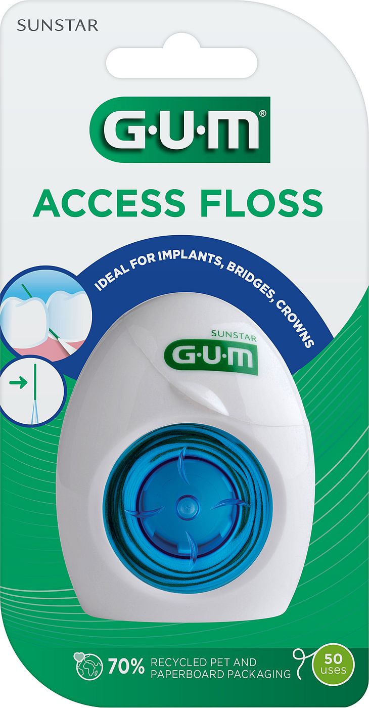 GUM Access floss 50 stk. tandtråd med trådfører. Gør det let at rengøre under og omkring implantater, bøjler, broer, kroner og større tandmellemrum.