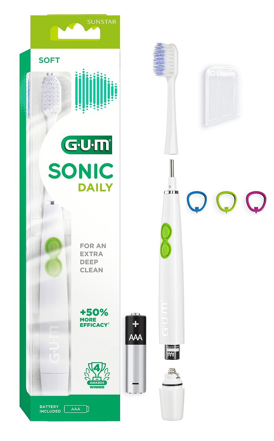 GUM Sonic Daily Tandbørste giver en kraftfuld, men skånsom rengøring med 12.500 soniske vibrationer i minuttet. Kombinér med GUM Paroex tandpasta til irriteret tandkød og GUM Easy Flossers, der fjerner plak mellem tænderne -for en sundere mund og frisk ånde hver dag