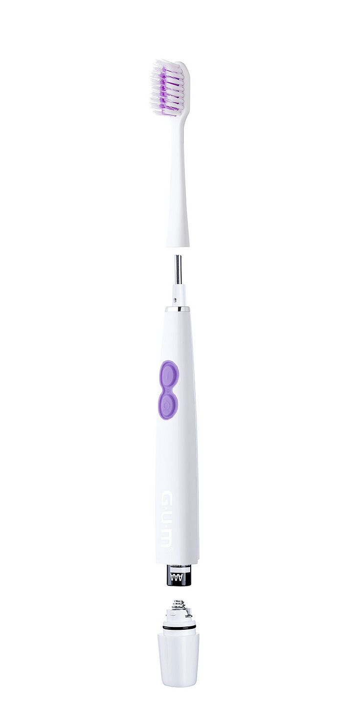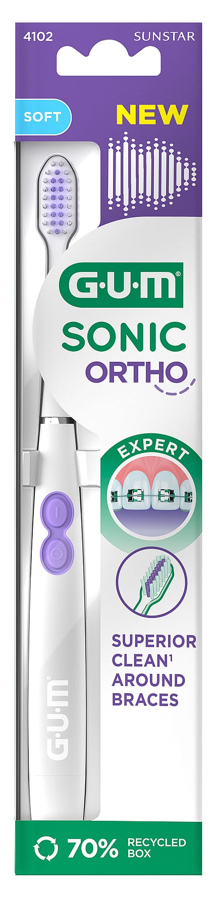 Sonisk Batteritandbørste til personer med tandbøjle. Den gør mere grundigt rent rundt om bøjlen.