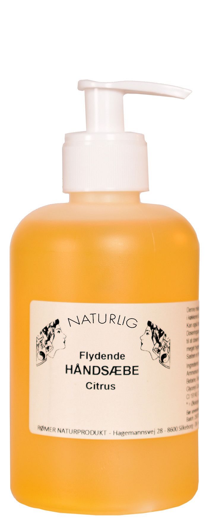 Flydende Citrus Sæbe - Denne milde sæbe er velegnet som håndsæbe i køkkenet og i badeværelset m.v.Doseringspumpen på flasken hjælper med til at dosere den rette mængde sæbe og er meget hygiejnisk i brug.