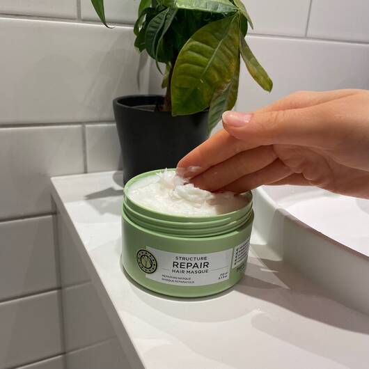 Når jeg står i badet og masserer Structure Repair shampooen godt ind i min hovedbund, kan jeg fornemme, hvordan den effektivt plejer mit hår med en masse fugt. Balsammen er lige så skøn. I det øjeblik Structure Repair Balsam møder mit hår, kan jeg mærke, hvilken kærlighed den giver mine skadede spidser.