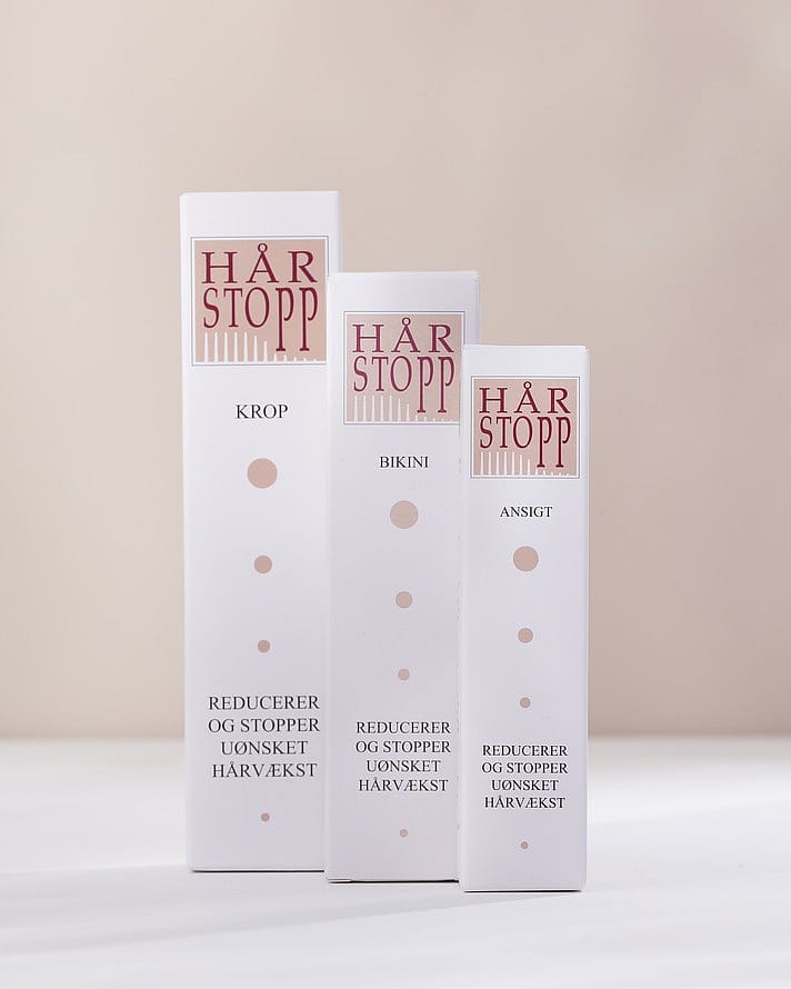 HårStopp stopper uønsket hårvækst HårStopp er en mild, skånsom og effektiv hårvæksthæmmende creme, der får hårene til at stoppe med at gro. Cremen er baseret på naturlige ingredienser og er fri for kemikalier og parabener.