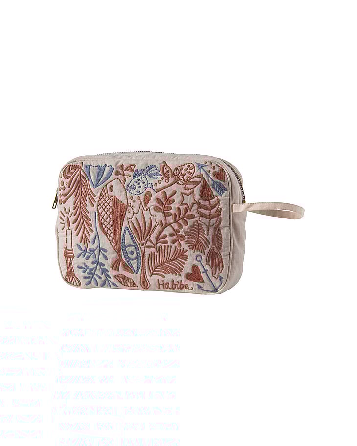 Makeuptasken er et af vores kerneprodukter. Den har den perfekte størrelse til tasken eller til opbevaring på badeværelset. Den lille strop gør det nemt at hænge den op.