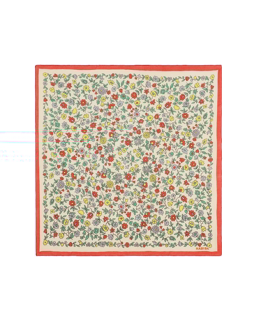 Dette bandana har et charmerende vintage-inspireret print med levende blomster og en kontrastkant, lavet med kærlighed fra HABIBA.