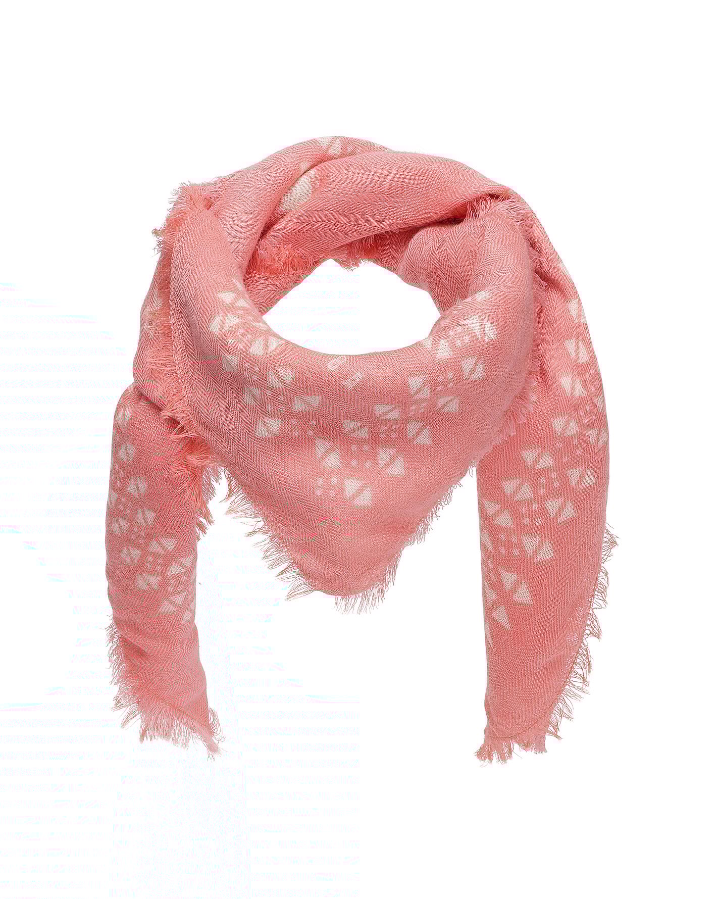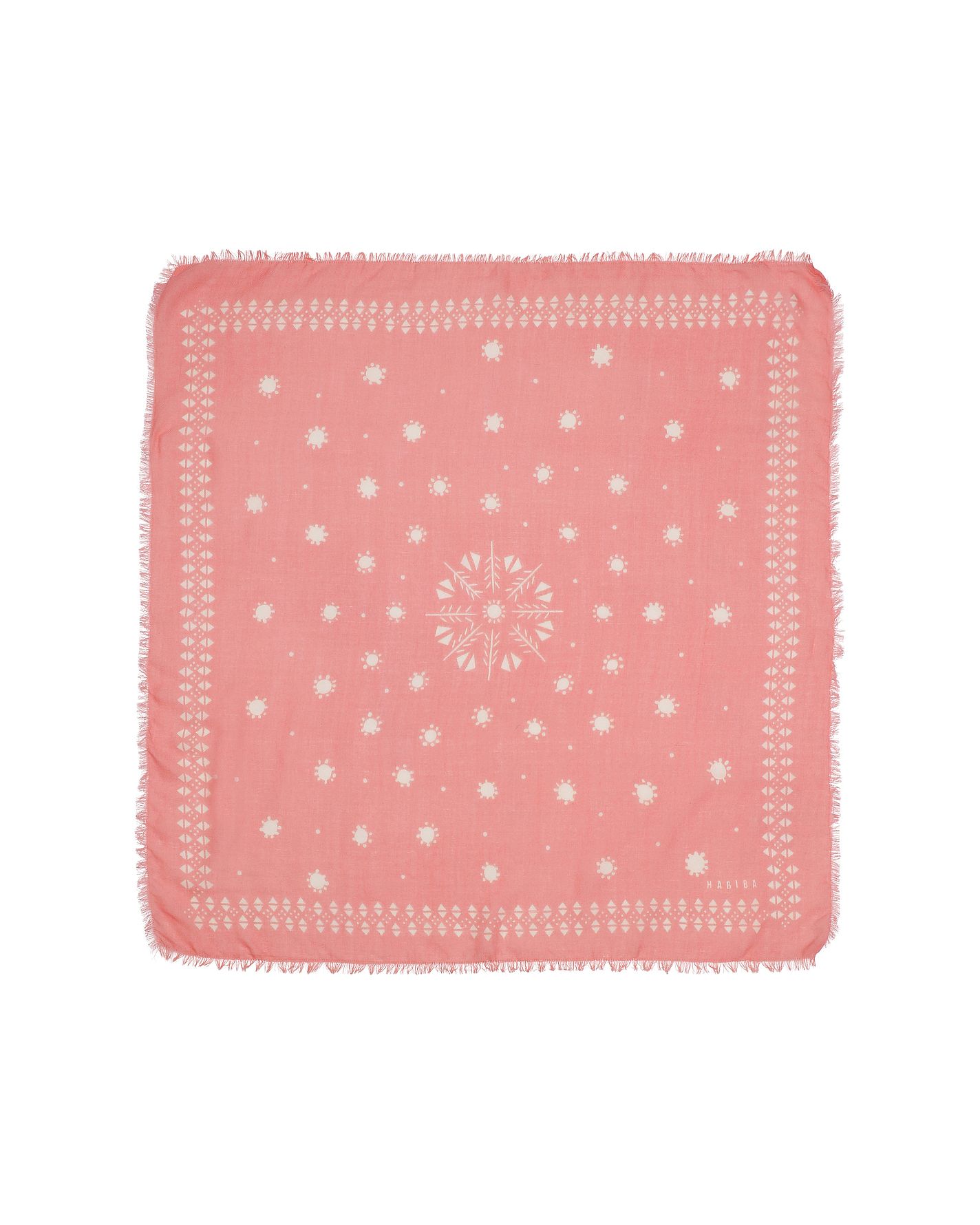 Dette tørklæde har et fint håndtegnet print inspireret af ukrainske broderimotiver og klassiske bandana mønstre. Tørklædet er sildebensvævet og har rå frynsekanter. 65% økologisk bomuld/ 35% uld (RWS certified - Responsible wool standard).