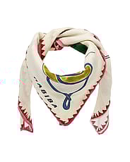 Denne bandana har et lille fint håndtegnet print med blomster og sløjfer samt en kontrastkant og et lille håndtegnet logo.