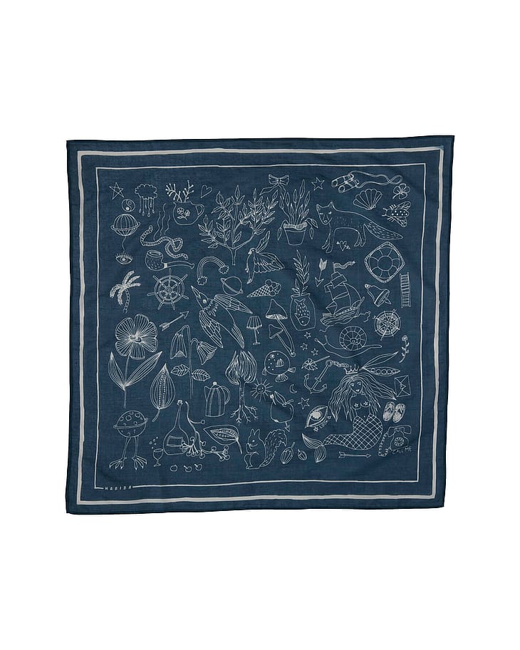 Denne bandana har et fint og fantasifuldt håndtegnet motiv med en masse små detaljer. Nemt at style i halsen, i håret, på tasken eller som bælte. Kun fantasien sætter grænser.