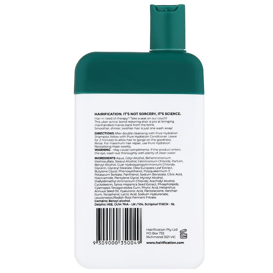 Aqua, Cetyl Alcohol, Behentrimonium Methosulfate, Stearyl Alcohol, Cetrimonium Chloride, Parfum, Benzyl Alcohol, Guar Hydroxypropyltrimonium Chloride, Glycerin, Glyceryl Stearate, Olea Europaea Leaf Extract, Butylene Glycol, Phenoxyethanol, Polyquaternium-7, Potassium Sorbate, Panthenol, Sodium Benzoate, Citric Acid, Niacinamide, Pentylene Glycol, Myristyl Alcohol, Diallyldimethyl Ammonium Chloride, Arachidyl Alcohol, Cyclodextrin, Salvia Hispanica Seed Extract, Phospholipids, Cyamopsis Tetragonoloba Gum, Phytic Acid, Helianthus Annuus Seed Oil, Hyaluronic Acid, Pantolactone, Xanthan Gum, Tocopherol, Lactic Acid, Sodium Hyaluronate, Leuconostoc/Radish Root Ferment Filtrate.